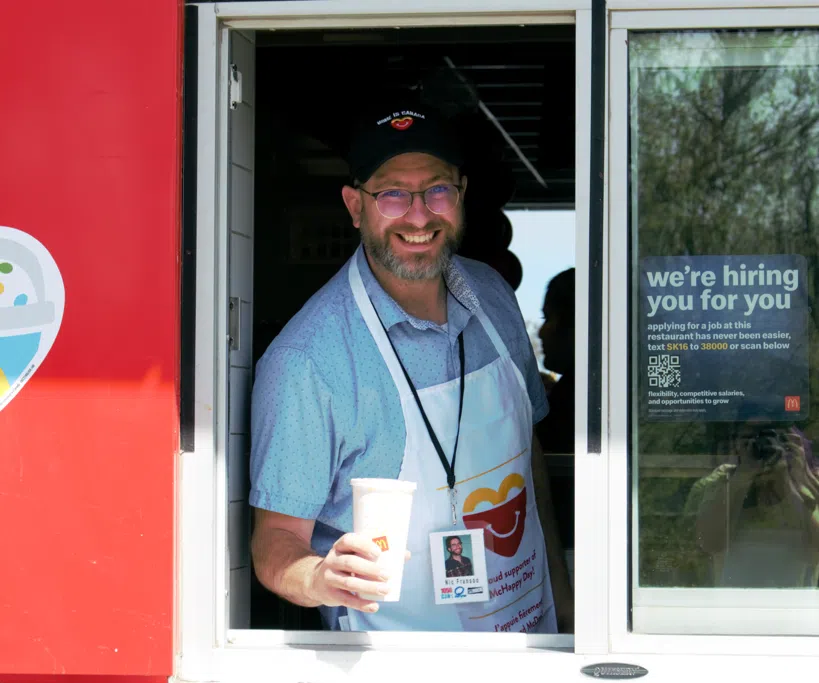 McHappy Day is the day that McDonalds Restaurants across Canada donate proceeds from an entire day to Ronald McDonald House Charity. It’s awesome to be a part of this day each year. We have the best McDonalds Teams here in the Battlefords and Meadow Lake. Yesterday I got to spend some time in my happy place at the Drive Thru Window and then I entered uncharted territory in the kitchen. You can see that focus on my face! I tell you, I gained a whole new respect for the McDonalds Team members who put it all together. WOW! It’s like clock-work in there, and there is no wasted time.