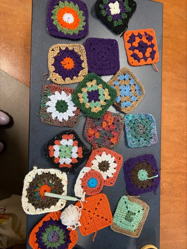 This one is definitely a trust the prosses one. I don’t use a pattern I just kind of wing it and sew all of the squares together in the end. Then I will have a cute patchwork cardigan!